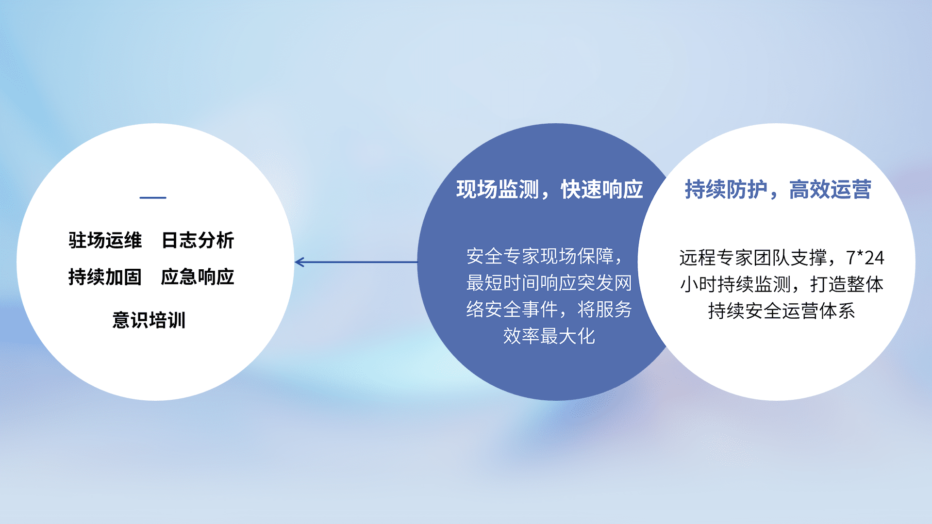 7X24小时持续监测安全事件,保持安全策略有效性,降低资产脆弱性风险,,,精准拦截黑客攻击,,,减少被黑客利用的机会,,,,第一时间遏制,,,降低损失。。。